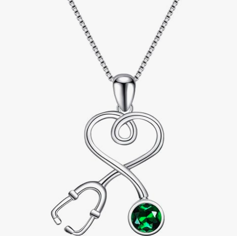 A nice nurse-themed necklace or piece of jewelry is a beloved gift for nurses to show their pride. A top seller on Amazon is this birthstone stethoscope necklace.